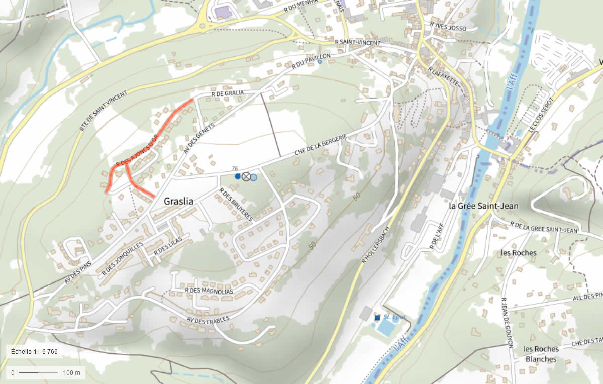 Accès: rue de Gralia, allée des Roses, avenue des Genêts, avenue des Pins