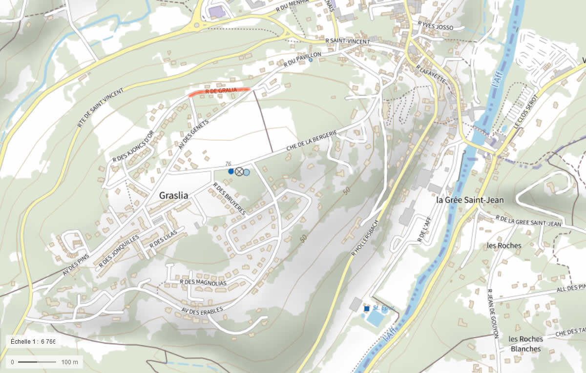 Remarque: voie en surplomb de la route de Saint-Vincent
