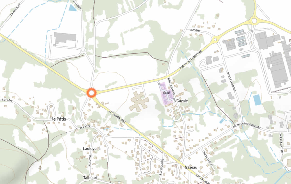 Remarque: la sortie nord du rond-point dessert l'entrepôt logistique Yves Rocher