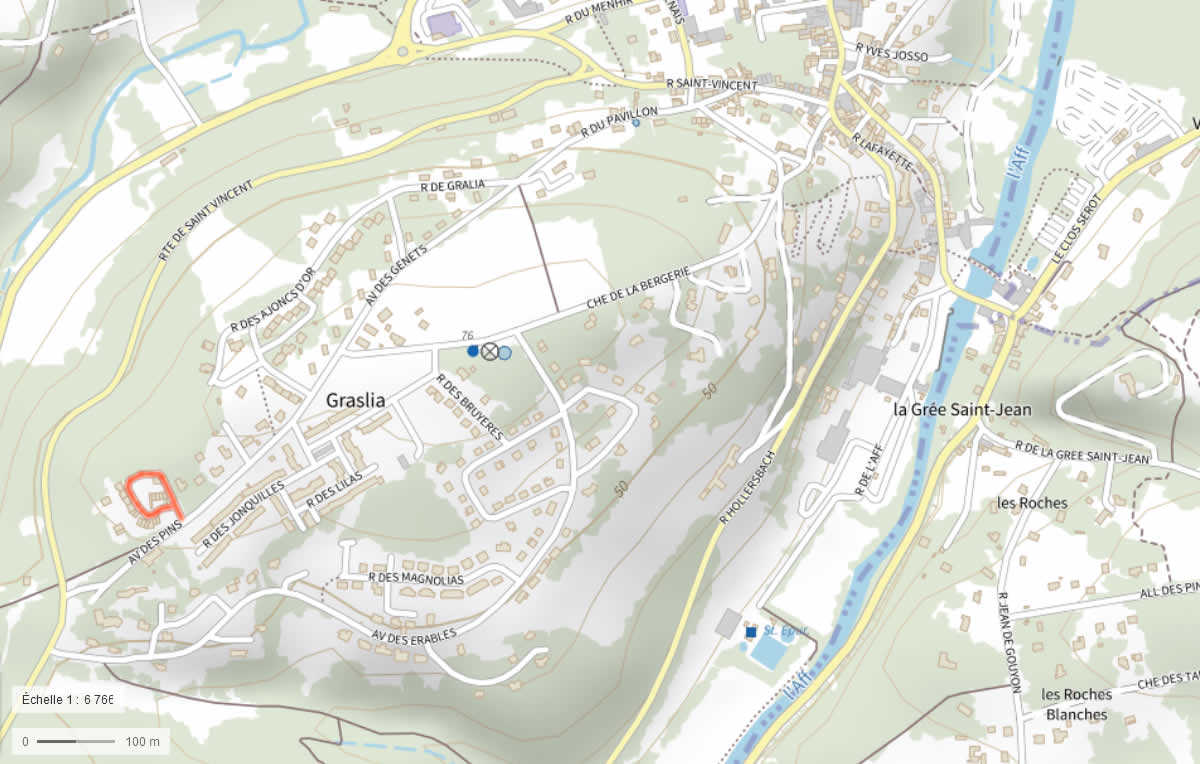 La rue des Marronniers est située au nord de l’avenue des Pins.