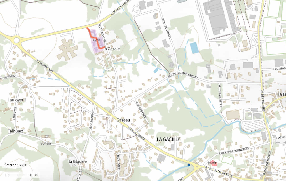 La rue Jean Meschinot traverse le périmètre de la gendarmerie nationale entre la départementale 773E et la rue de la Gazaie.