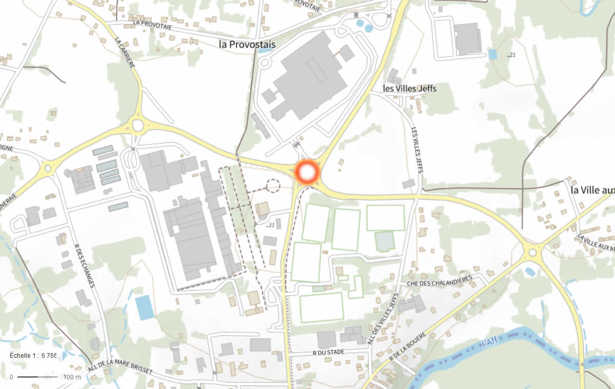 Le giratoire des Villes-Jeffs est situé au croisement des départementales 773E et 773 en direction de Carentoir.
